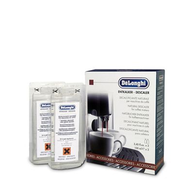 This natural de-scaler from Delonghi is designed to extend the life of your coffee machine as well as improving the taste quality of your drinks by cleansing the interior with an antibacterial design. This box contains two 100ml bottles.